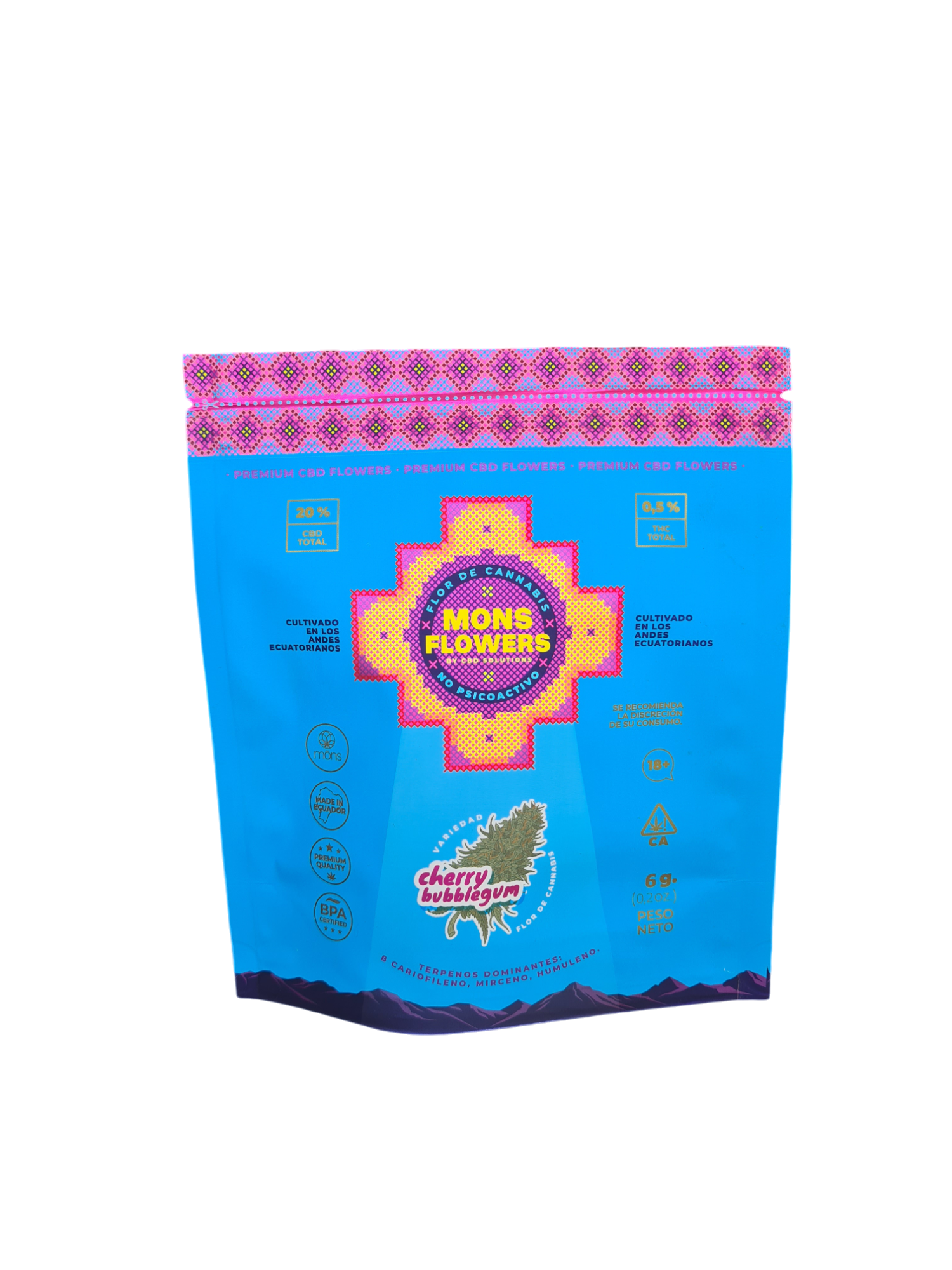 La flor de boutique de mons es de uso ornamental o para fines ceremoniales y religiosos. no destinado para consumo humano. La flor de CBD es cultivada en Ecuador bajo buenas prácticas agrícolas en fincas autorizadas siguiendo un minucioso proceso de secado y curado garantizando el aroma de una flor de altura de clase mundial. Una vez que la flor llega a su punto óptimo es cosechada para seguir su fase de podado y curado bajo buenas prácticas de higiene y manufactura. Sus niveles llegan al 20% de CBD con -1% de THC.